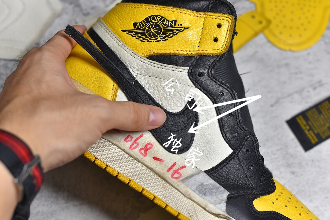 Detail comparison Air Jordan 1 Retro High OG "Yellow Toe" Exclusive yellow toe
