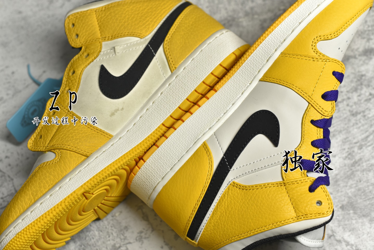 ZP Comparative Identification: "Female style" The Lakers colorway is the only pure original level Air Jordan 1 MiD on the market