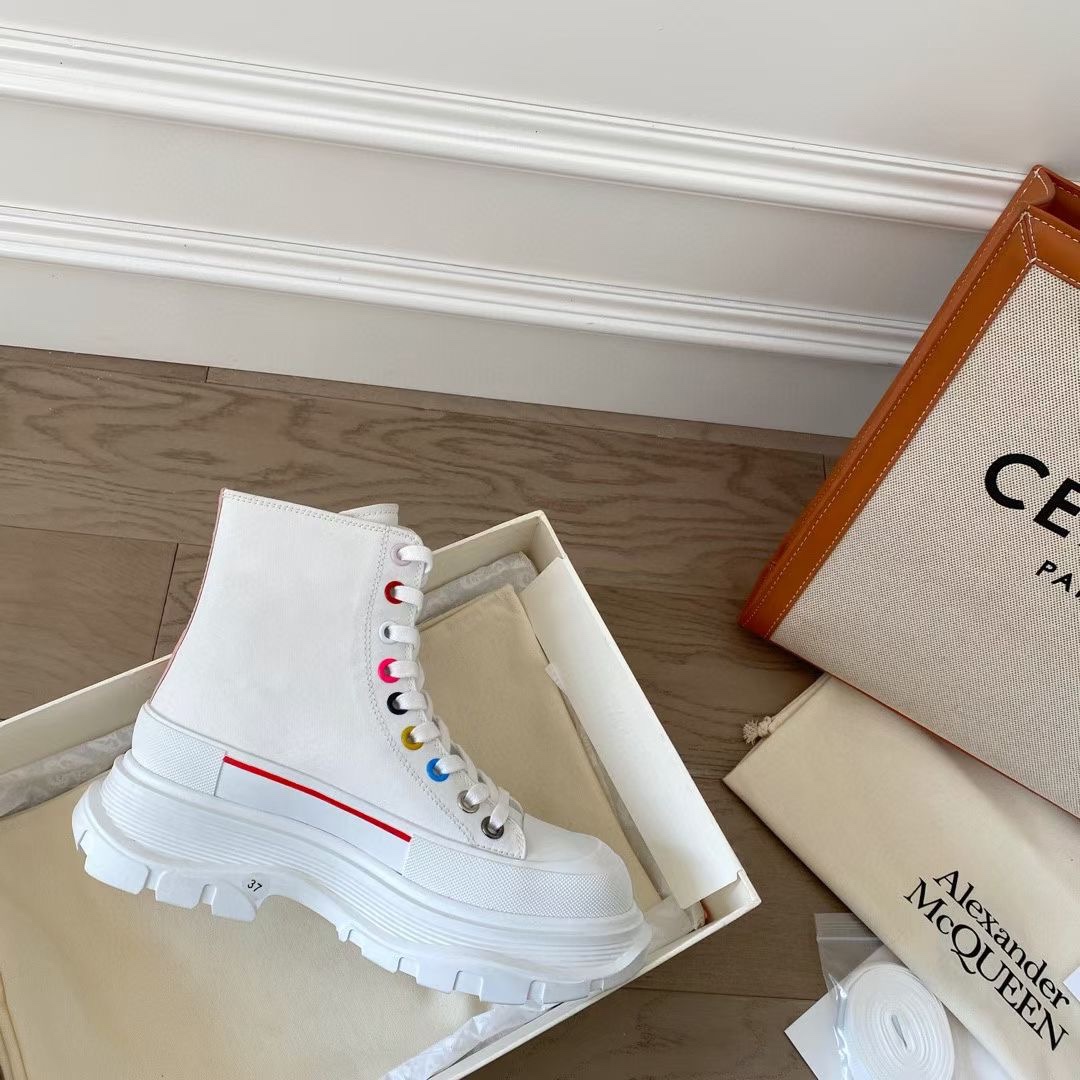 Alexander McQuee* Classic canvas thick-soled Dad shoes God-like appearance level, a versatile streetwear style! The overall look is very layered, with an invisible increase of 4CM. Original 3D stereoscopic printing and original computerized engraving lines, produced by a large factory in Dongguan. They cannot be compared with those produced by ordinary workshops. Welcome to compare The high-quality canvas is paired with a multi-layer TPU outsole. It may look bulky, but in fact, the outsole is soft, lightweight and can bounce back freely. Original genuine full set packaging + shopping bag Men and women, ?Size: 35-44 (40 for women, 45 for men, no return or exchange)