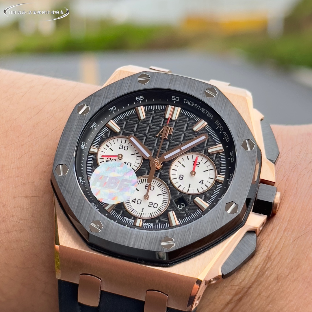 Audemars Piguet Royal Oak Offshore Limited Edition Multifunctional Chronograph Mechanical Wristwatch nDimensions: 44mm - 17mm n [Bezel] The bezel is consistent with the original and uses imported ceramic bezel n [Crown] The crown is made of hexagonal ceramic material and the top is brushed and polished n [Movement] The movement is even more imposing under the backdrop of the transparent back cover. The gray-black automatic rotor has a strong sense of layering, and the gemstones set on the surface of the movement are also added. 7750 3126 automatic chronograph mechanical movement [Crystal] The crystal is made of imported sapphire glass. [Case] The case is made of imported 316 stainless steel. [Strap] It is equipped with imported fluororubber strap and original pin buckle. It is a must-have tool for tough men. After multiple polishing and frosting processes, the unique octagonal bezel of AP is finally expressed with sharp and angular lines. Highly recommended Audemars Piguet entry-level watches!!