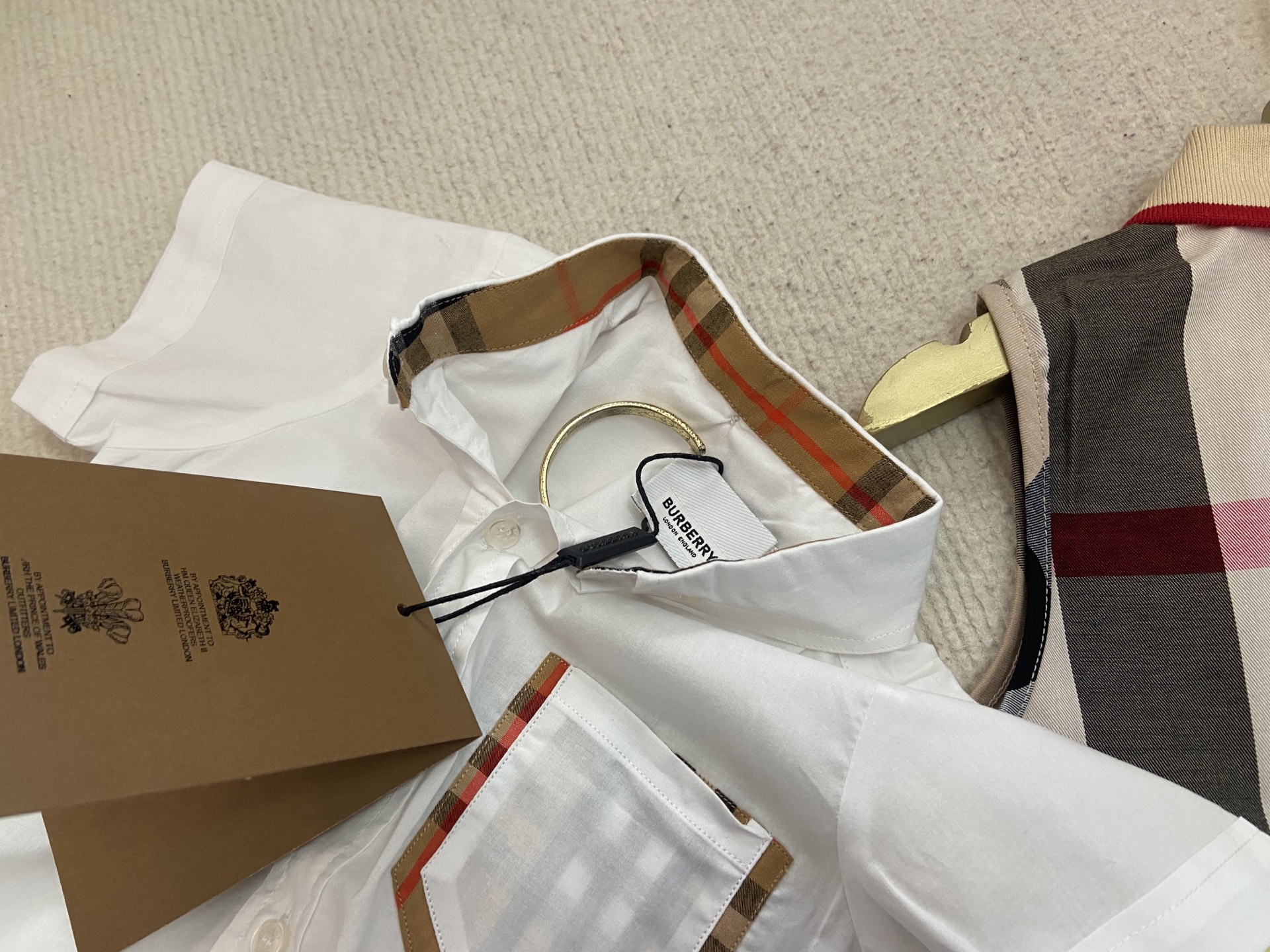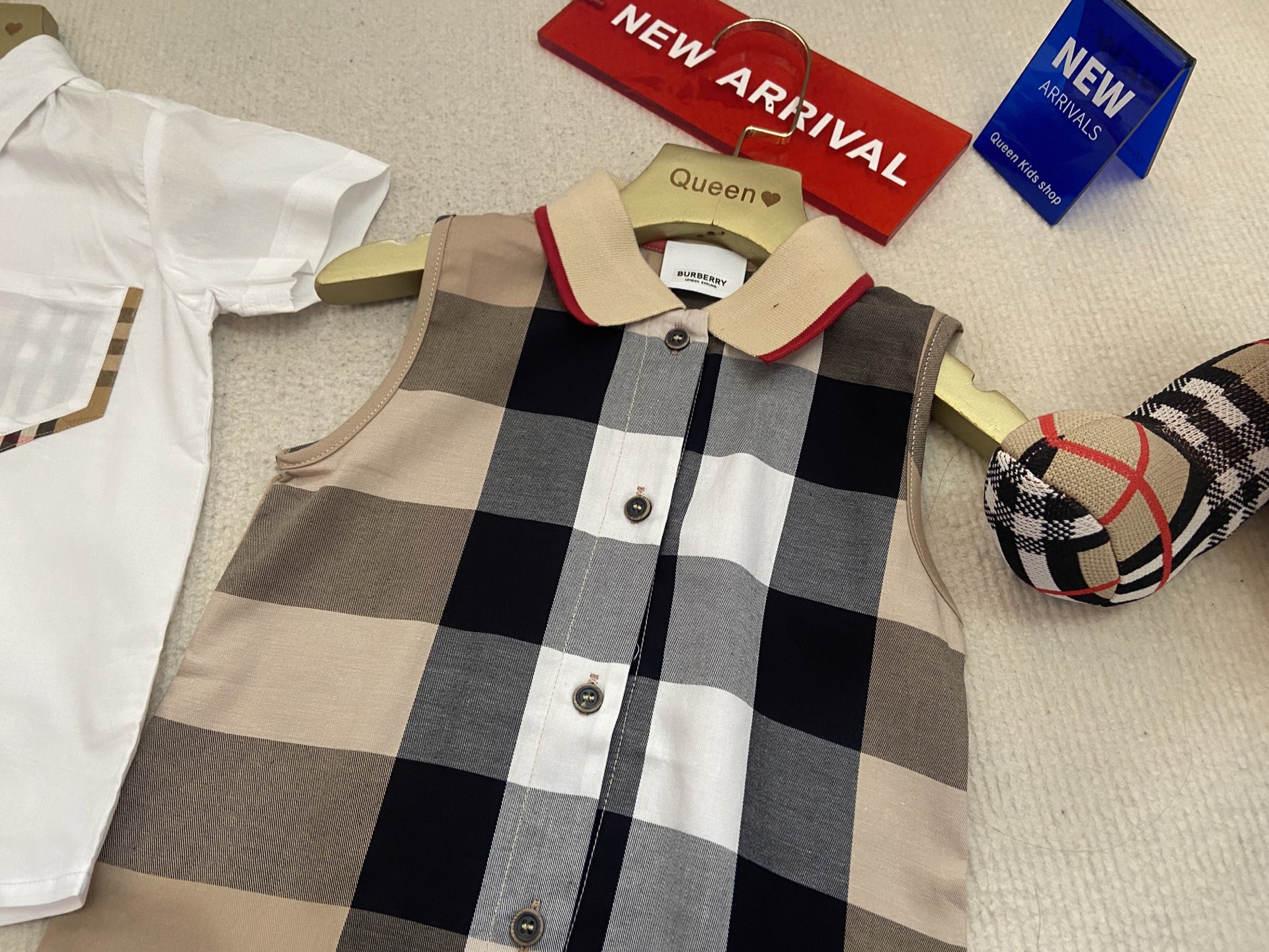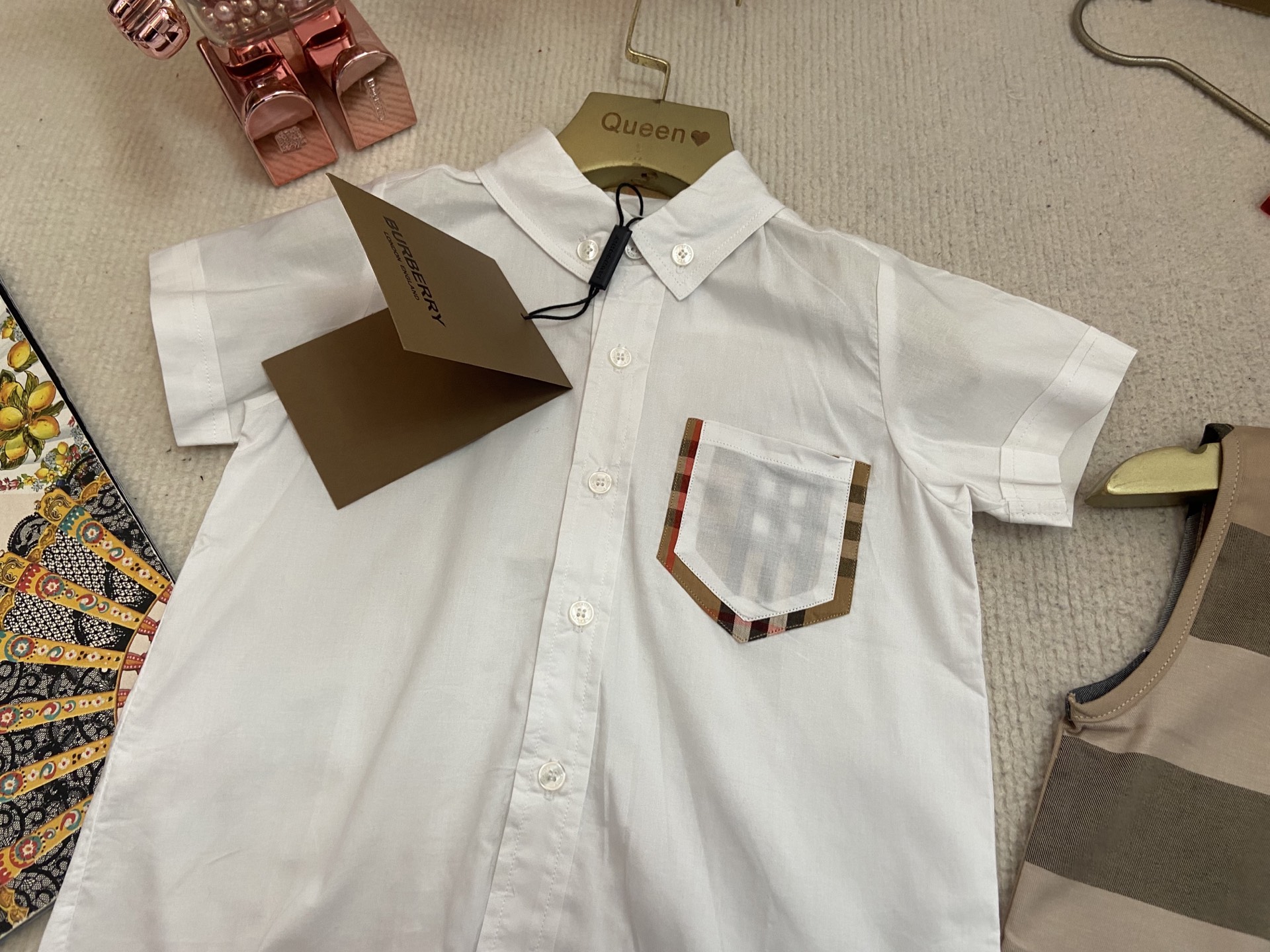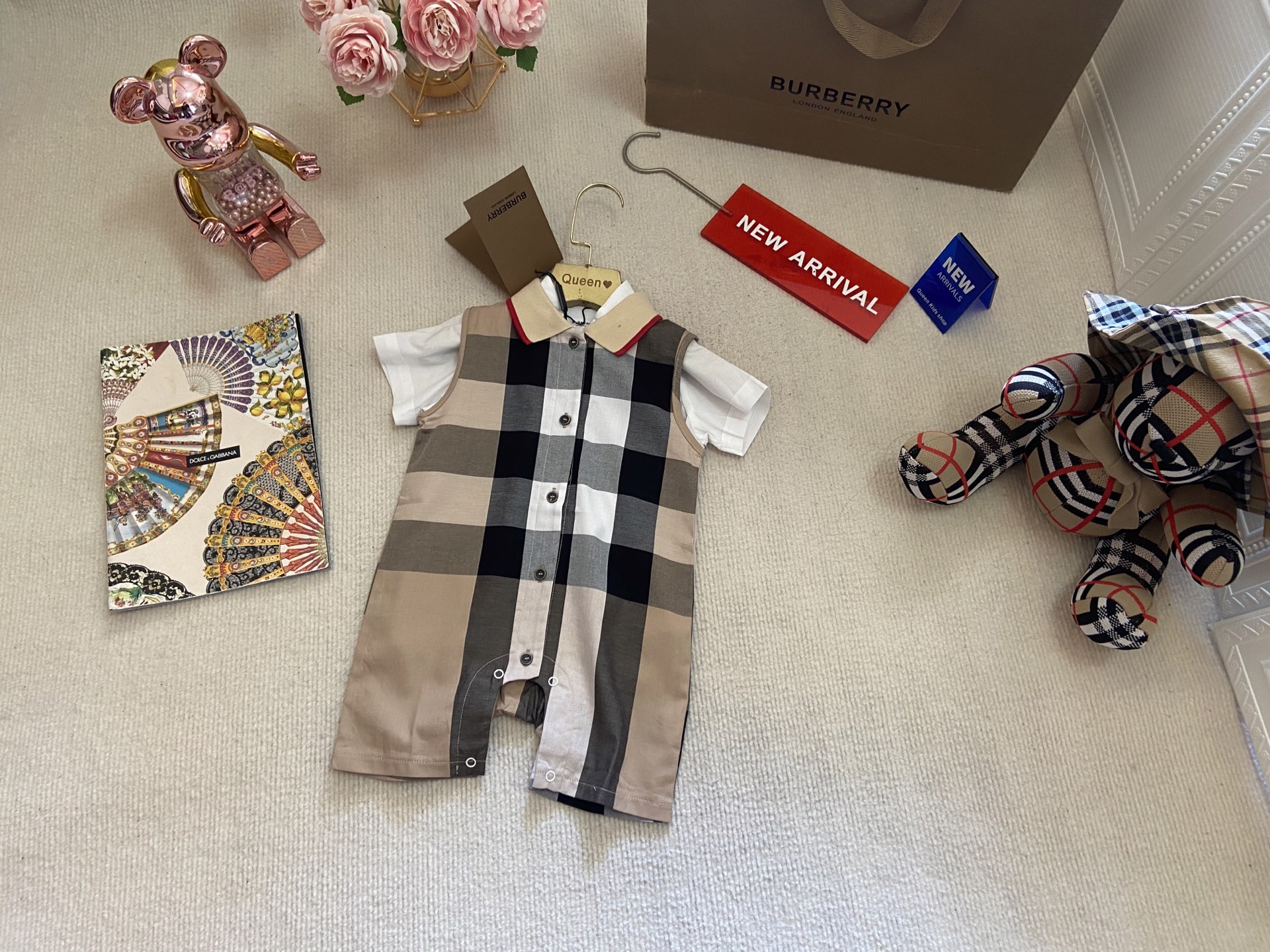 Book for one week! Burberry, a high-end children's wear set for boys and girls, is a two-piece set: a checked shirt and a vest jumpsuit. Made of pure cotton woven fabric, it is comfortable and good-looking to wear. Size: 59-66-73-80-90cm