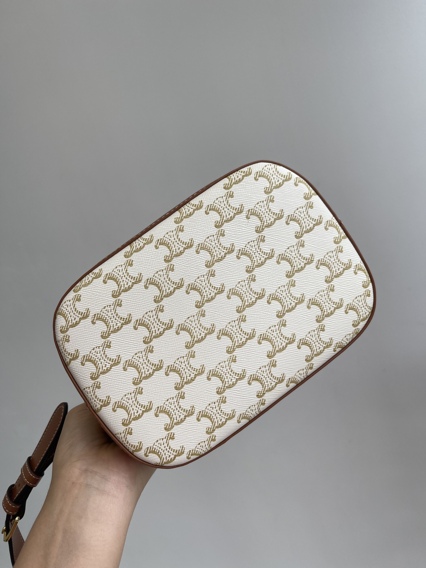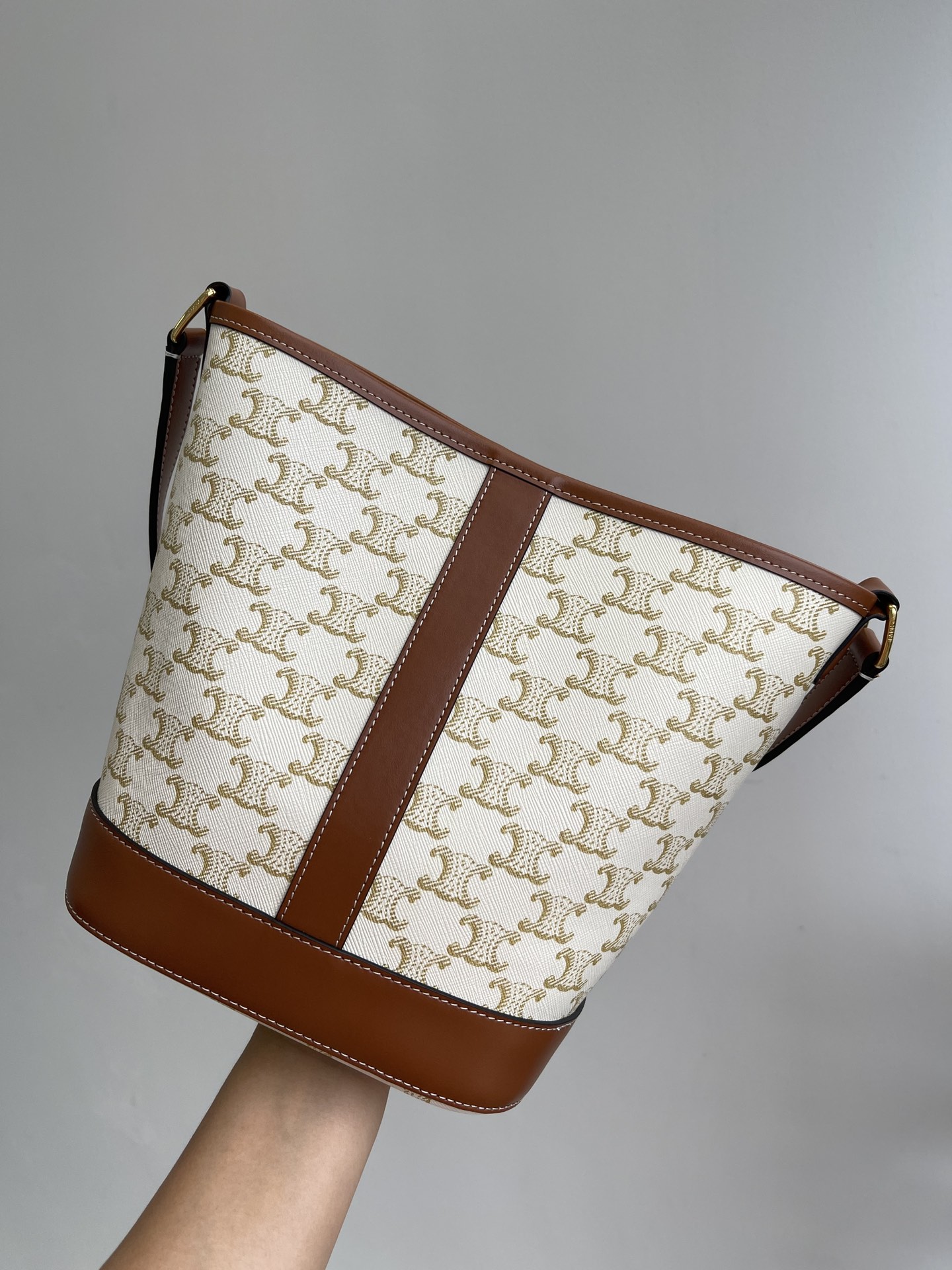 CELINE/Celine small TRIOMPHE canvas collection 19 New monogram bucket, shoulder or crossbody New monogram pattern Triumphal Arch more standing than before MORE fashionable than BEFORE, overall looks very retro SUPER GOOD to match winter with coat, Spring with trench coat, summer with skirt and so on ?? Its practicality goes without saying. The bucket bag lives up to its name and is really very spacious. The bag body is coated with canvas and comes with an adjustable leather shoulder strap. It is lined with 100% imported calfskin canvas and features a golden glossy metal snap fastener. It is both versatile and practical when opened and closed. Size: 30X22X13cm nNumber: #63947800