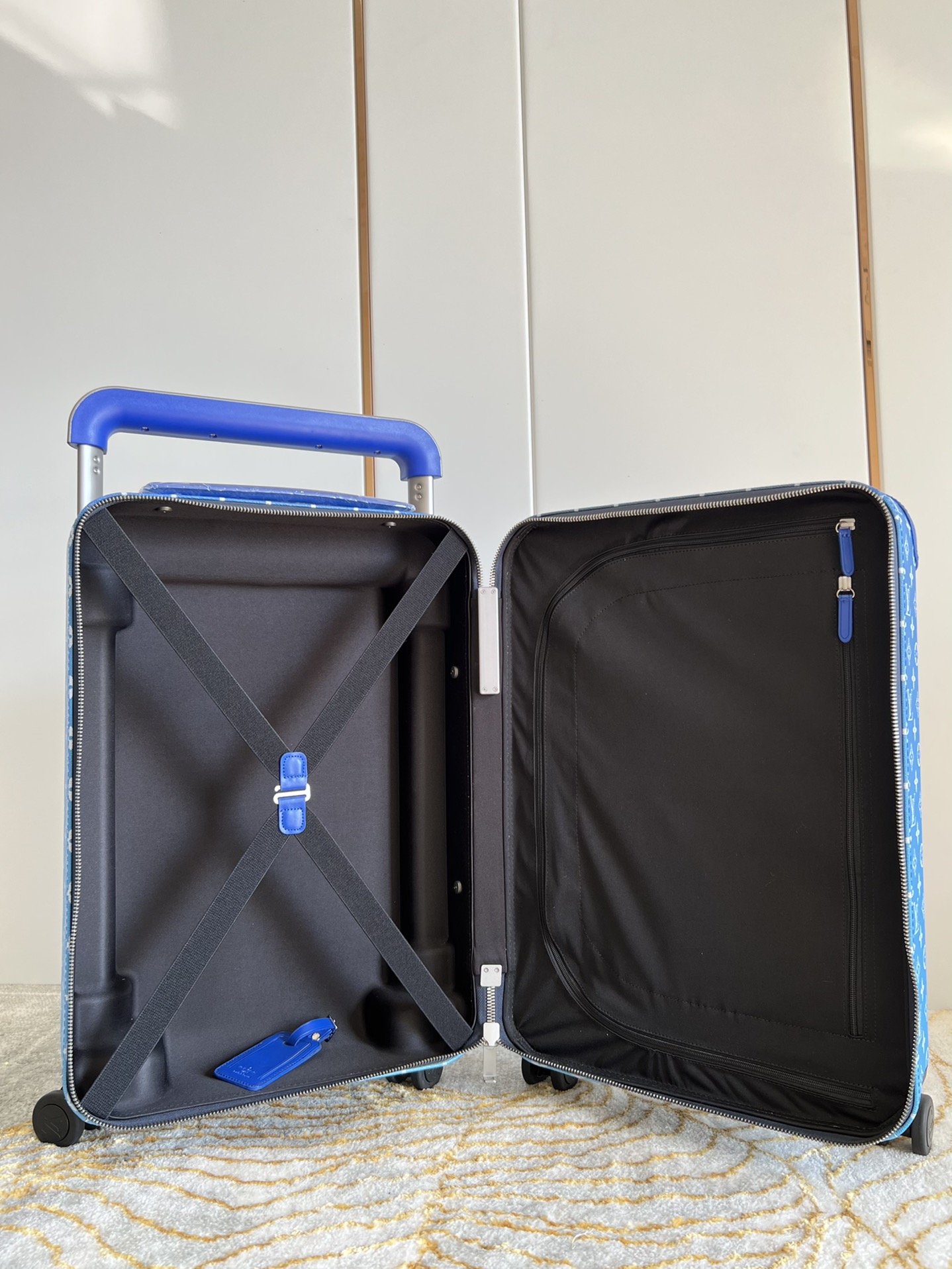 [Exclusive Real Photos of the Blue Sky and White Clouds Suitcase] The all-new Horizon suitcase revolutionizes Louis Vuitton's legendary classics with individual creativity, embellishing the iconic Monogram canvas with travel stickers and retracing the design style of the brand's traditional suitcases. The leather corner protection and the oversized external handle enrich the smart details, creating an elegant and practical travel companion. Detailed features: 35.0 x 23