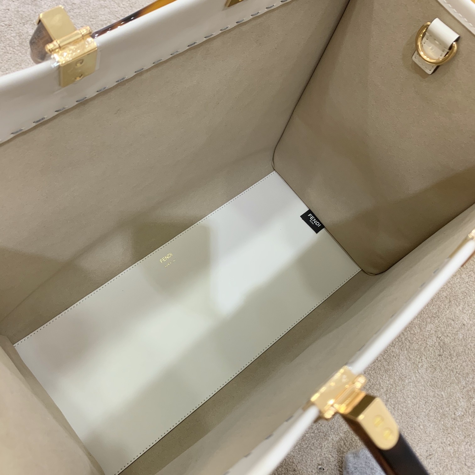 Beige FE ??I TOTE tote bag "Sunshine Tote bag" Simple letter LOGO design, amber double handle is the biggest focus of the whole bag, single twist is very powerful, no grip, overall retro strong, very suitable for retro fashion-loving, hard goods highly recommended ?? 2801 Dimensions: 40x35x21cm#16060