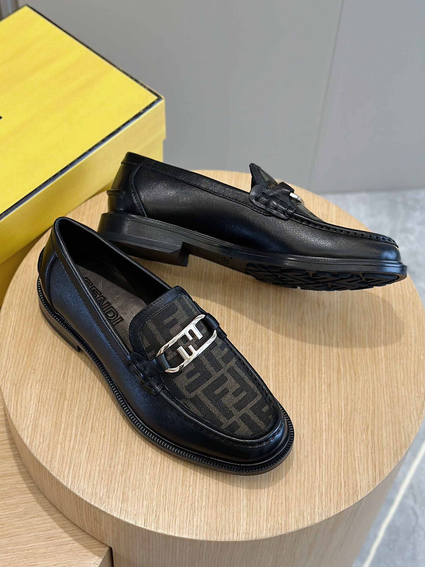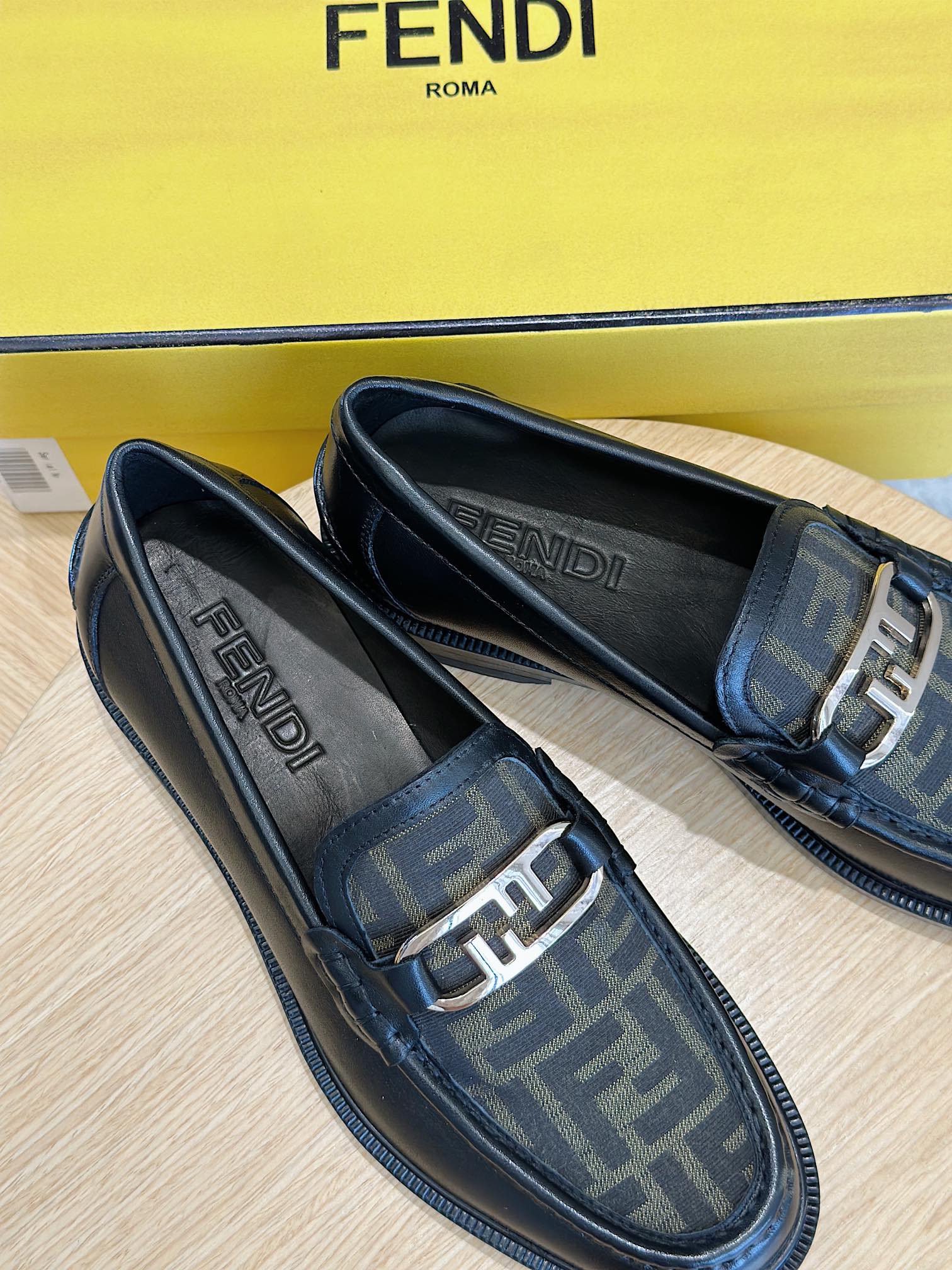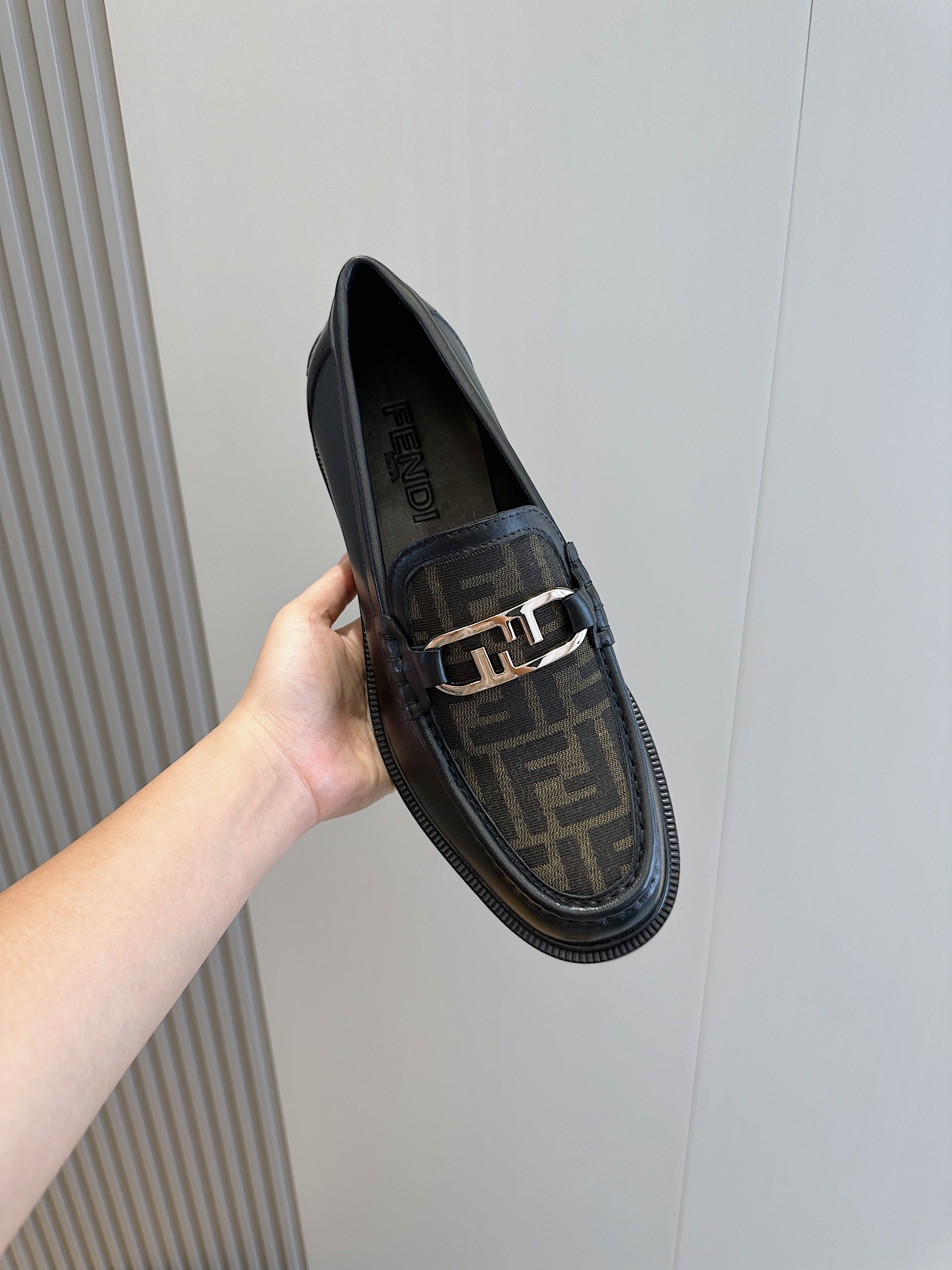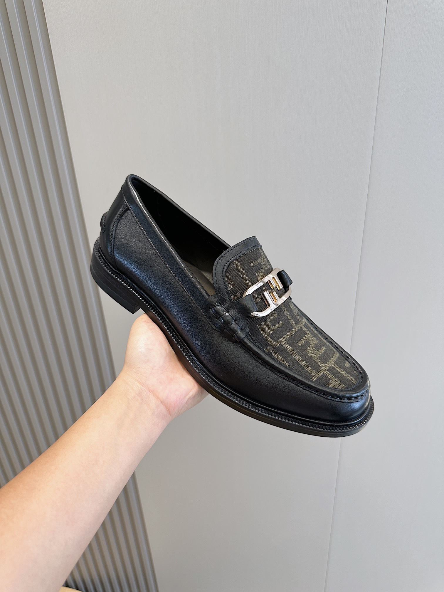 Model #4005??????Fendi black cowhide loafers for men It is decorated with FF pattern and has a silver finish metal. Imported cowhide material, cowhide lining, original factory outsole Size:39-44 (custom-made at 38.45)