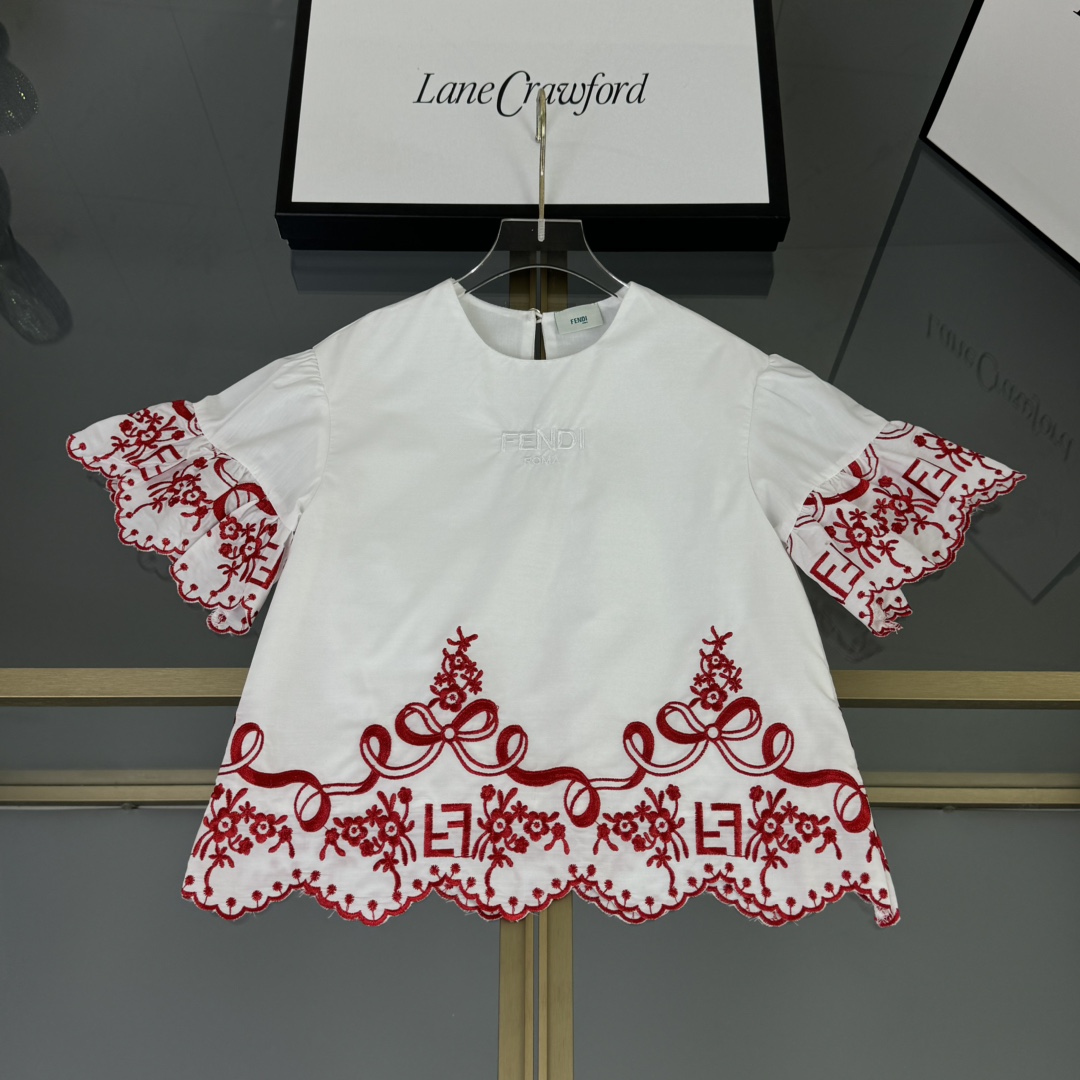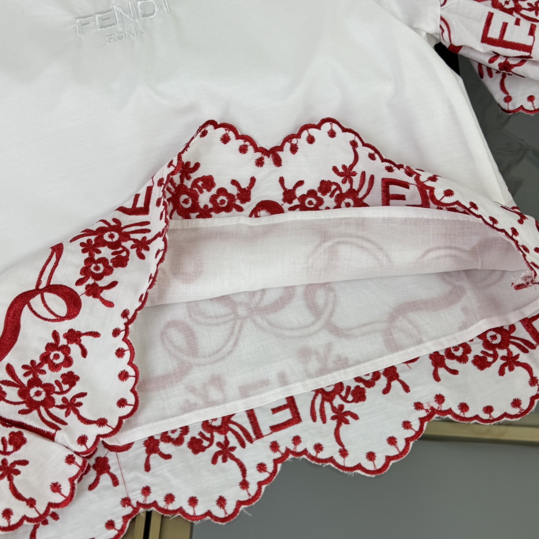 Fendi, high-end children's clothes, girls dress, double layer design, outer woven cotton, cotton, inner outer skirt FF embroidery ?? wine red color, body comfortable, good-looking, code number: 100/110/120/130/140/150 cm