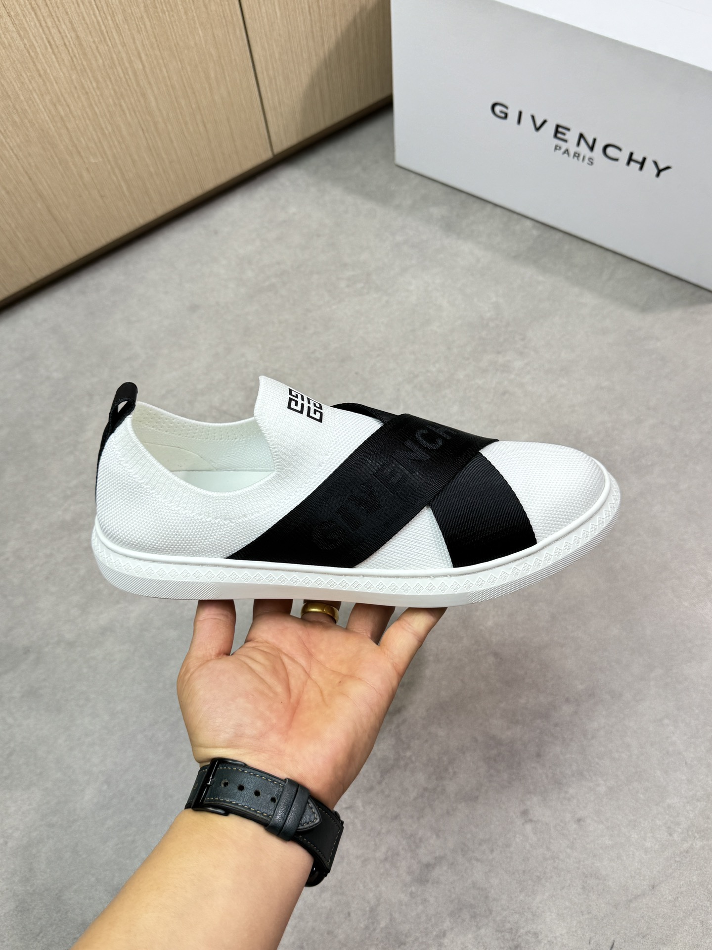 GIVENCHY #3005?????? - Premium quality original single ?????? casual sports shoes - Upper: Imported ?? washed Napa calfskin. Air compressor brand logo, brand knitted fabric - Inside: Foot pads; Water-dyed cowhide - Outsole: Ultra-light TPR