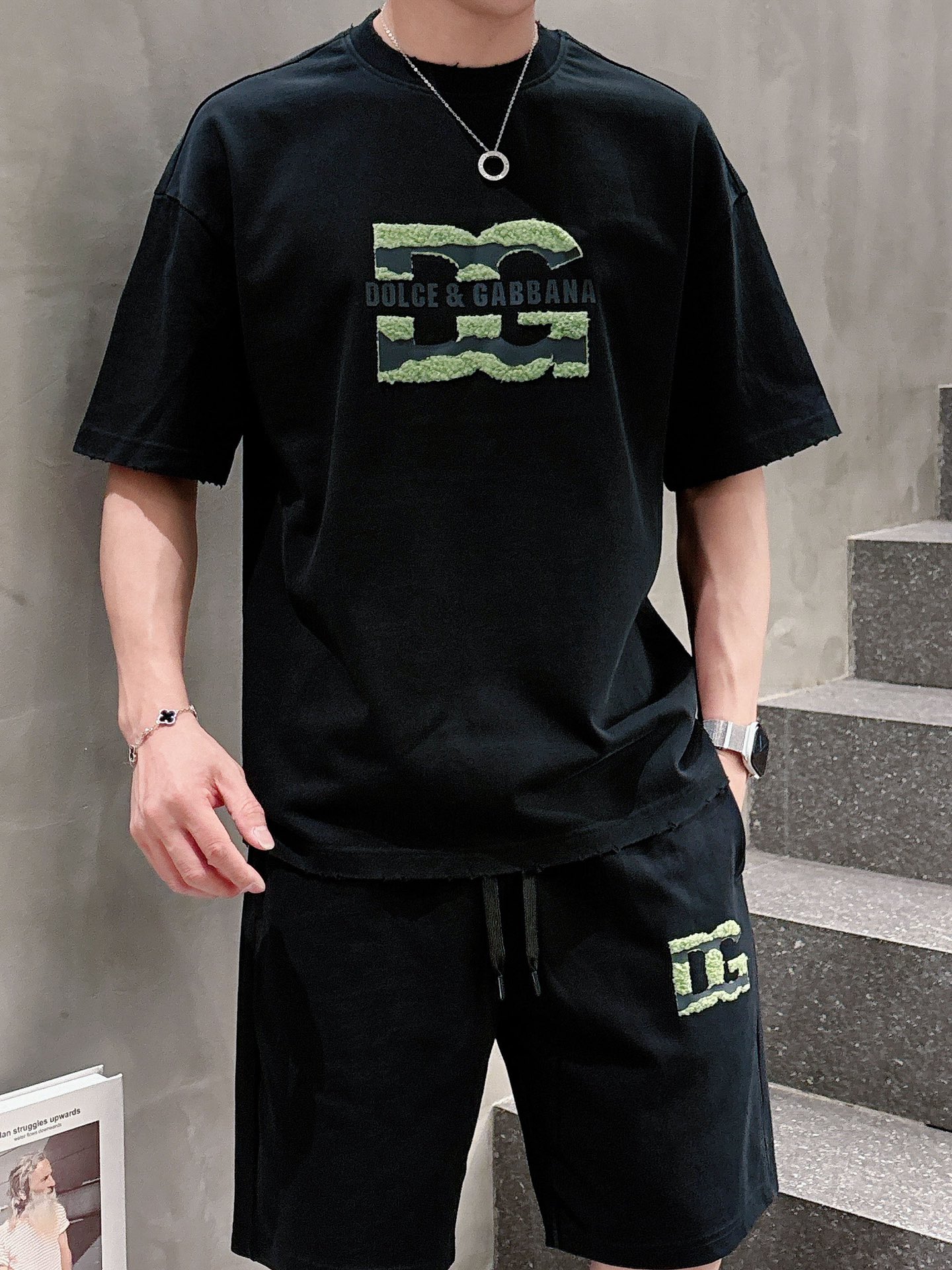 DG Dolce & Gabbana ???? high-end custom collar, sleeve and hem with perforated design. New spring/summer 2025 collection first release at the counter. Latest short sleeves and shorts casual set. Heavy concave and convex pattern design. High-end pure cotton custom design, avant-garde and fashionable! The brand logo emphasizes high-end custom pure cotton fabric with meticulous craftsmanship design. Soft to the touch. Comfortable to wear. Counter level exquisite vehicle lines. The workmanship is exquisite. The wearing effect is incredibly cool! Essential items for stylish men! Size: M-2XL loose style. Please report your height and weight