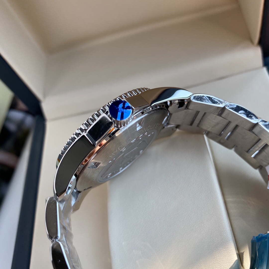 Longines - The Conquest Diving series men's watch, the Submariner of Longines, has a water resistance of up to 300 meters, a diameter of 41mm, and is equipped with the original Swiss ETA64111, also known as the Longines L157 quartz movement. The watch uses a stainless steel case, with a black dial set with Arabic numerals and hour markers, and Super-LumiNova? luminescent. There is a date display at the three o 'clock position, with an anti-wear sapphire crystal glass mirror surface. The watch strap is of stainless steel chain structure and uses a double-fold safety clasp with a diving extension device. Simple and fashionable, business and casual. Exclusive first release with full set packaging!