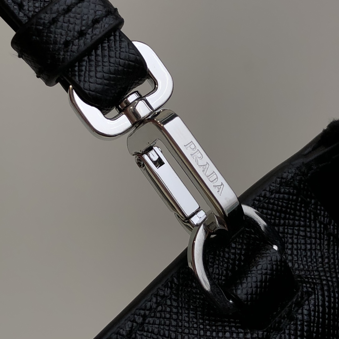 26.5cm black Prada men's clutch with letter grains ~