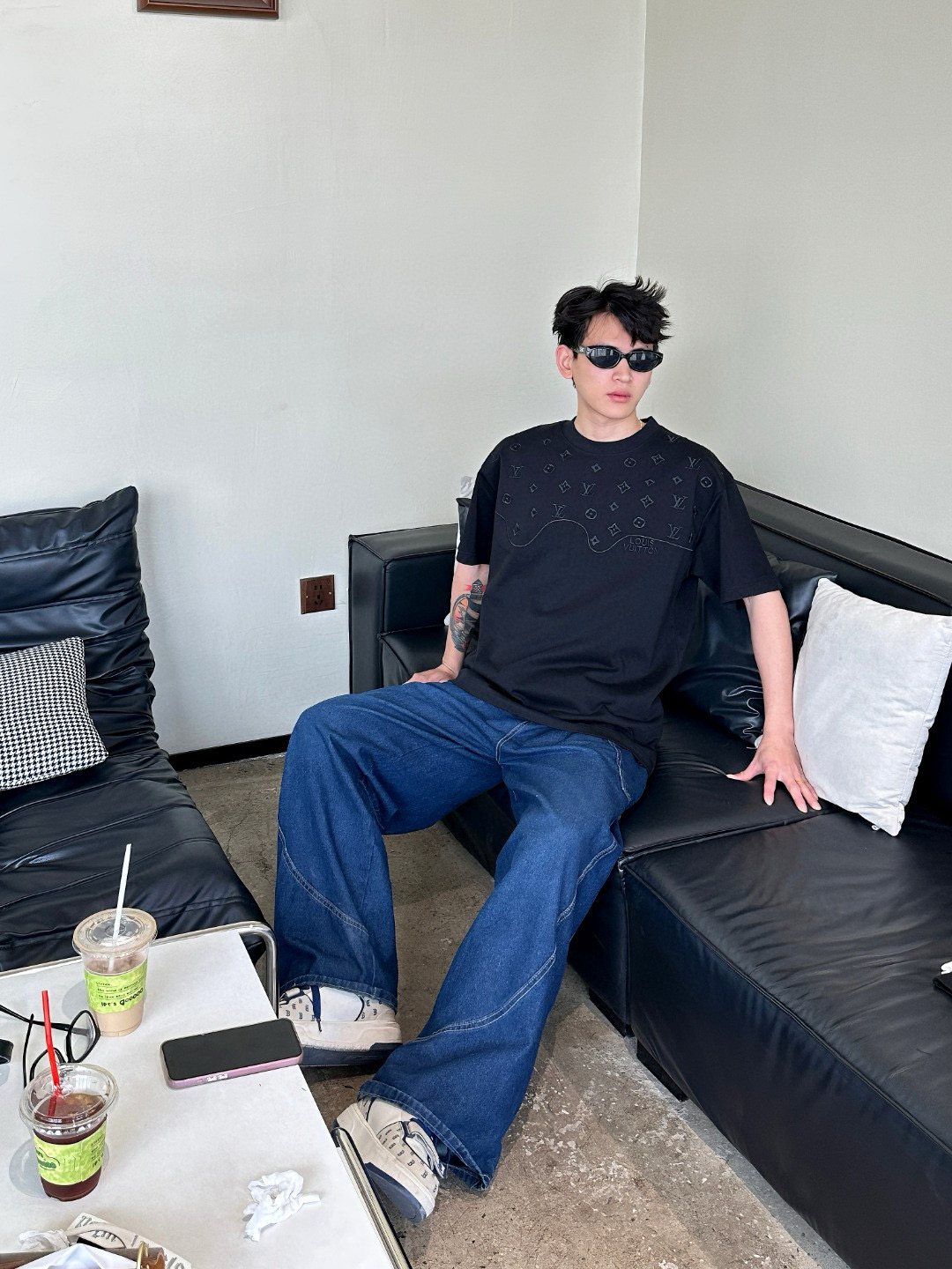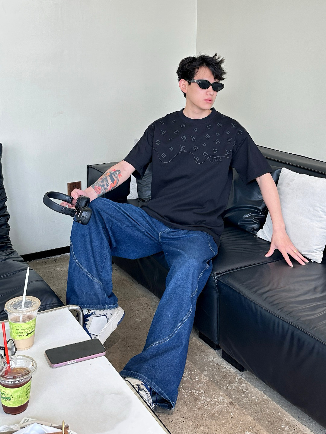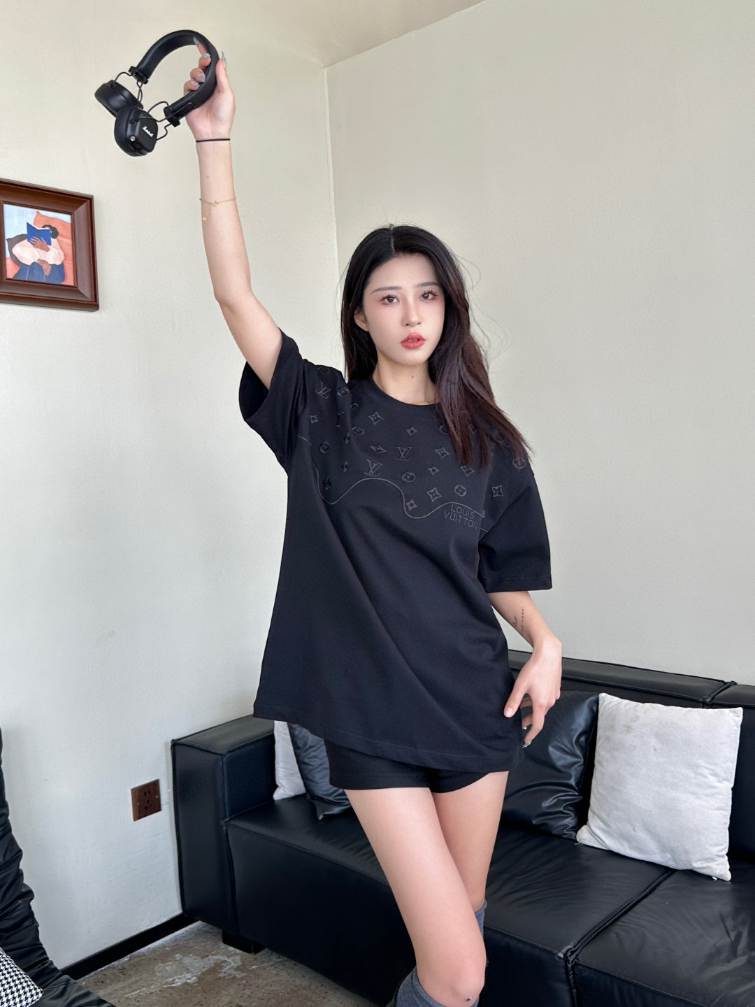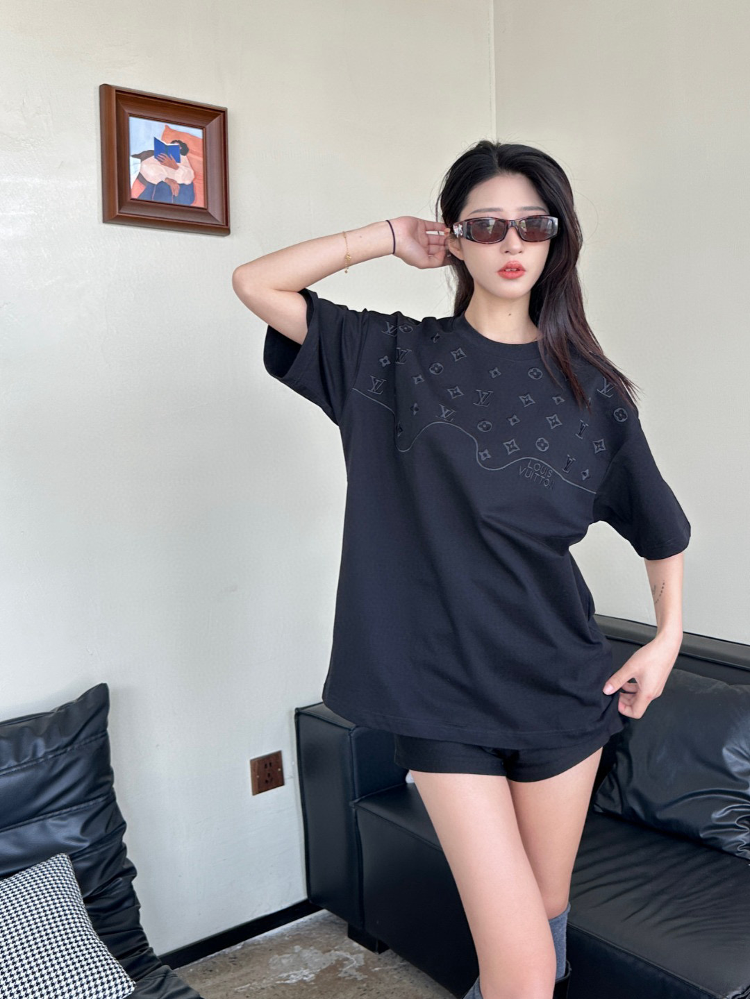 #Louis Vuitton/ Louis Vuitton 25ss dark pattern old flower logo patchwork embroidery short-sleeved upper body effect ??