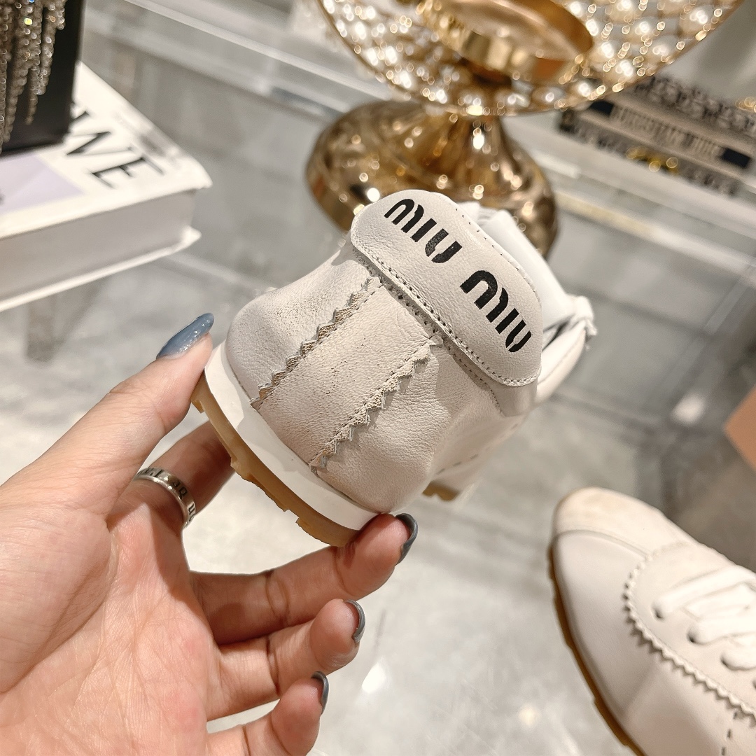 ???? MiuMiu MiumIU 24 Autumn/WINTER NEW DIRTY little WHITE SHOES FIT PARTICULARLY COMFORTABLE breathable ?? Simple RETRO fashion The imported fine cowhide material, with a sheepskin lining and rubber outsole, is very soft. Sisters, hurry up and get it. It feels particularly light when worn Size:#34-40.(Custom-made 40 is non-returnable and non-exchangeable.)