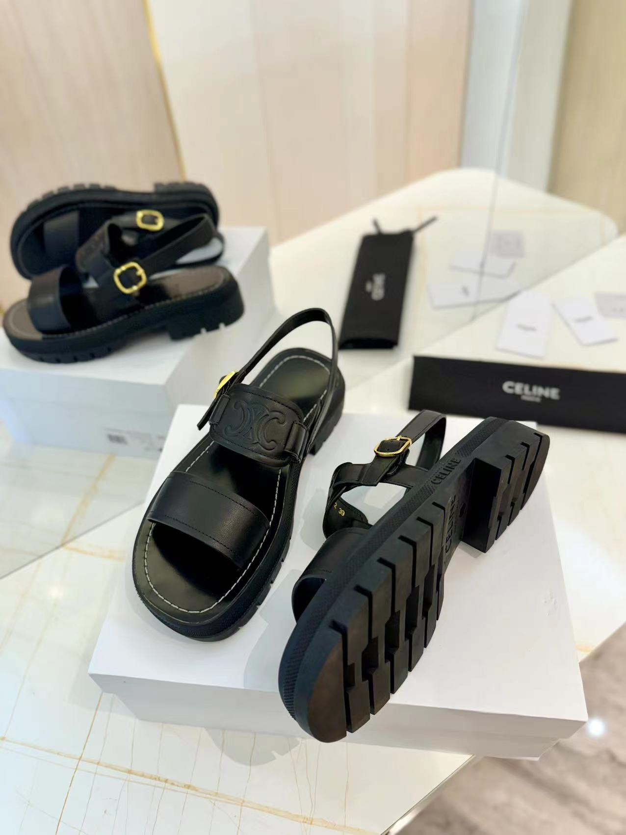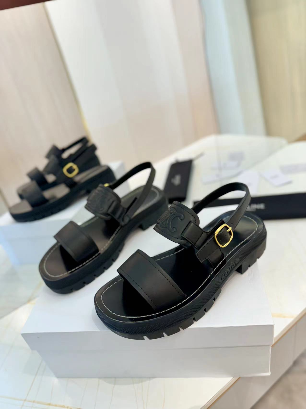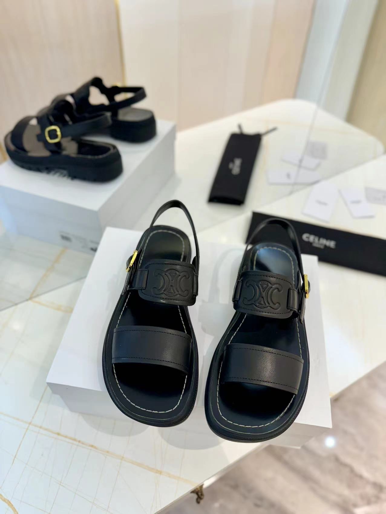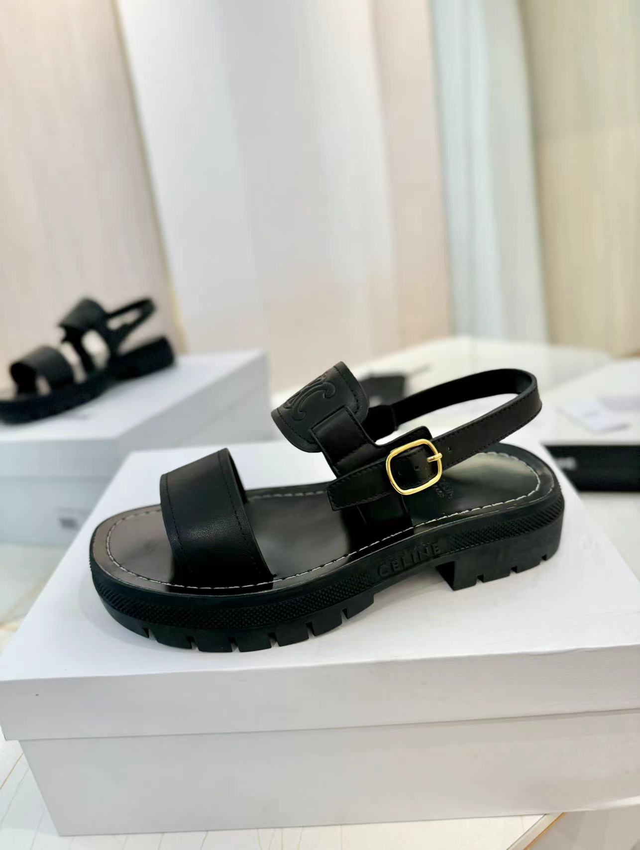 ?? ?? Celine | Celine 24ss Spring/Summer New Arc de Triomphe Beach Sandals ??? Go? Material: imported tire cowhide lining is cowhide original calf tendon outsole ? Genuine leather edge original mold metal buckle size: 35-40