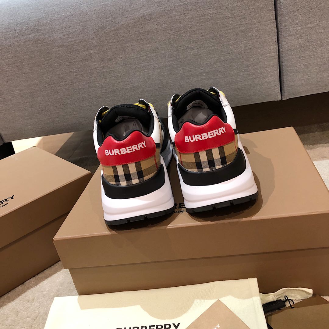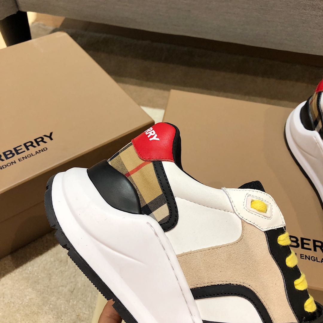 ???? [BURBERRY]?? sneakers are crafted from a selection of leather materials, paired with suede and Vintage checkered cotton, and feature a raised, curved sole that exudes vitality on the tips of your feet. Upper: 43% polyester fiber, 30% calfskin suede, 11% cotton, 10% polyurethane, 6% calfskin. Factory size 35-41 for women. Male size 38-45