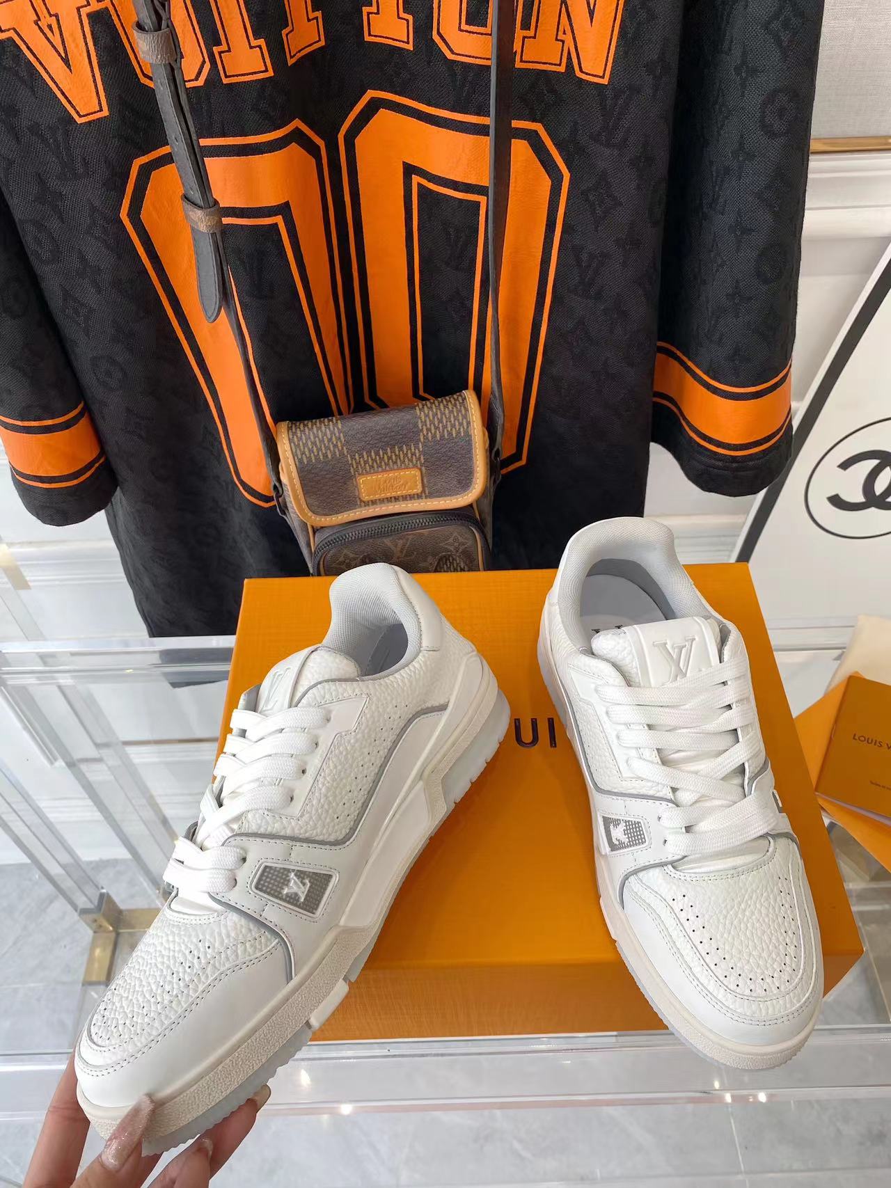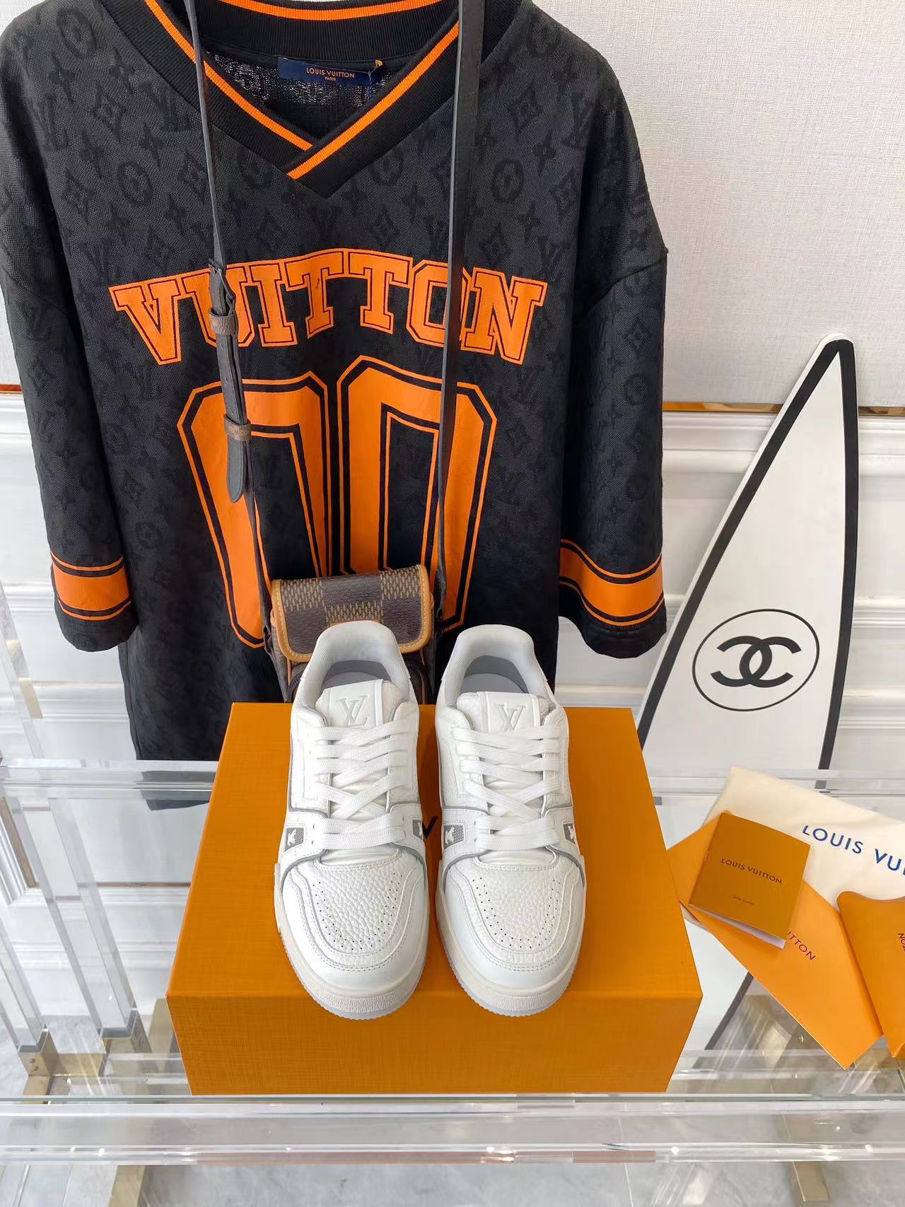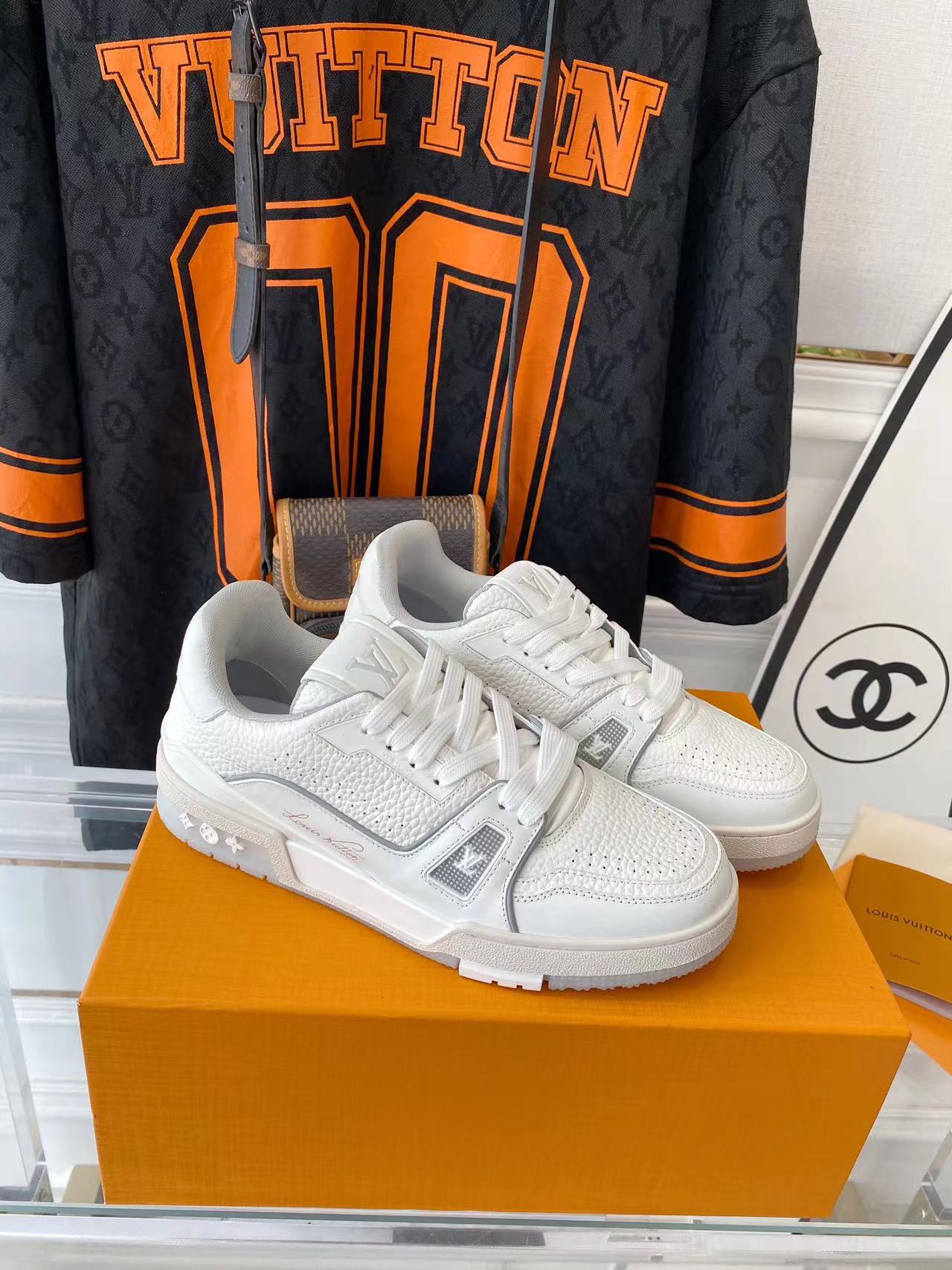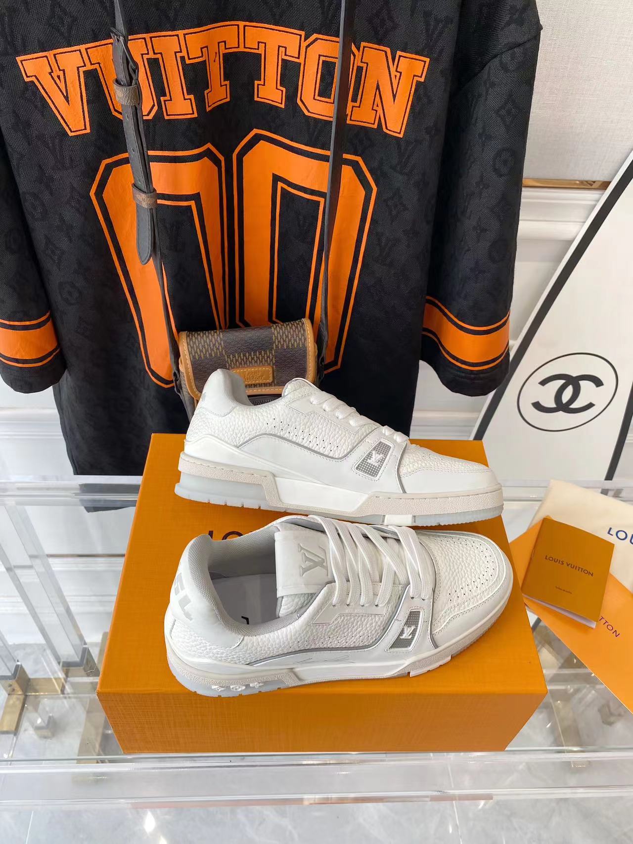 ???? ??L. The ??TRAINER sneaker, a favorite of Virgil Abloh, the artistic director of men's wear, is made of Monogram embossed calfskin and has a mesh lining. The innovative TPU 3-color outsole is decorated with Monogram flowers.