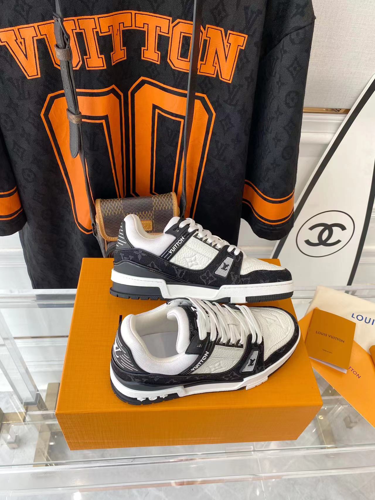 ???? ??L. The ??TRAINER sneaker, a favorite of Virgil Abloh, the artistic director of men's wear, is made of Monogram embossed calfskin and has a mesh lining. The innovative TPU 3-color outsole is decorated with Monogram flowers.